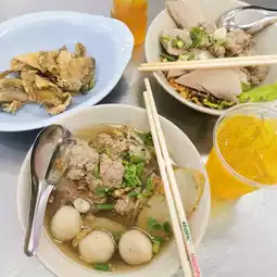 Nice tangy egg noodles with perfectly marinated meatballs & pork slices. The soup tasted good too. I ordered 1 dry & 1 soup to try. Both are just as nice. You can choose the type of noodles & size you want. I find the egg noodles here very nice tangy & different from others I've ate in BKK. It is also very reasonably priced.