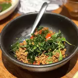 We also ordered crab fried egg, stinky bean and Thai minced pork. Overall nice to eat, not so spicy.