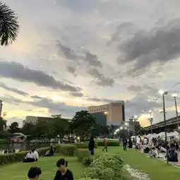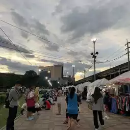 It is a night market in front of Ramkhamhaeng University, near Ramkhamhaeng University and Rajamangala National Stadium. It is a market that you can walk to every day, but it is closed on Wednesday. Importantly, it is near the workplace. You can walk to it every day. There are a lot of food and a lot of household items. There is a corner of the field to sit and relax, sit and eat by the pond. There are fish that you can feed. Sit and enjoy the cool breeze. #Night market #Travel in Bangkok #Ramkhamhaeng