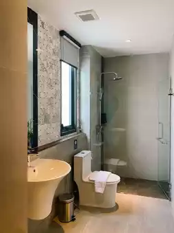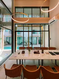 Last week we took a Staycation at Shan Villas Sukhumvit, located on On Nut 18 alley, which felt like a getaway from the city due to its serene and tropical atmosphere. The hotel's design is a blend of elegance and simplicity with a touch of Balinese style. The accommodations are divided into two main buildings, the Villa zone and the Standard rooms. We stayed in Villa 2, which has the advantage of accommodating up to 10 people, as it includes 3 large bedrooms, each with an attached bathroom, a central living room, and a jacuzzi that overlooks the hotel's shared swimming pool. It's an ideal place for families or groups of friends, but it's not suitable for loud parties as the space is not very large.
