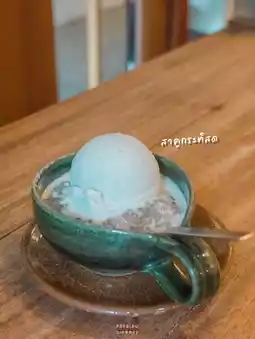 🥙 The shop has both food and dessert menus, but today we intended to eat dessert because we saw that the shop made it very cutely. We ordered fresh coconut milk sago and pumpkin banana and taro dessert. Both menus come with ice cream. The taste of the dessert is typical of Thai desserts with homemade ice cream. Eating them together is surprisingly compatible.