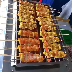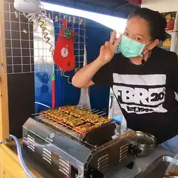 Satay pork wrapped in a stick is very delicious. The meat is soft and juicy, not hard. The sauce is delicious. The filling is crushed peanuts. It has a fragrant coconut milk smell. The sweet and sour sauce is a good way to reduce the greasy feeling. #BangkokTravel