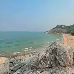 This secret beach is called 'Hat Sai Noi'. 🏝 It is a beautiful beach, small and quiet, not crowded. If you go during the summer, the sea is beautiful, the water is clear, and the sky is beautiful. There is a viewpoint at Khao Tao where you can go up and see a 180-degree view. I recommend going around 4 p.m. The sun is not too strong and the wind is cool. It is suitable for taking chic photos. 📸 There are a few restaurants on the beach. The prices are not expensive and the food is delicious. There are also beach chairs for rent. If you are going to Hua Hin, I recommend driving a little further to Pran Buri and you will reach Hat Sai Noi. There are many places to visit and cafes in Pran Buri and Khao Tao. - There are toilets and showers. 🚿 - You can rent a kayak. 🚣🏻 📍 Location: Hat Sai Noi, Khao Tao, Pak Nam Pran Subdistrict, Pran Buri District, Prachuap Khiri Khan Province https://goo.gl/maps/JTHquQxnkrrp7cRS6