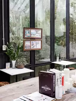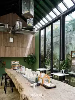 🪴 But if you like more privacy, we recommend walking into the Glass House zone. Along the way, there will be a corner to take pictures of the brick wall. The glass room is full of green trees.
