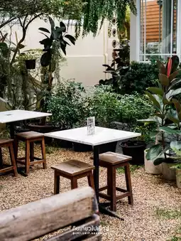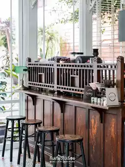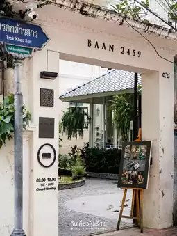 #Go to a chic cafe ☕️ CHATA Specialty Coffee A cafe with a slightly vintage feel, but it is perfectly combined with modernity. The entrance to the shop is a white wall archway that stands out with the word BAAN 2459. Inside, there is both a cafe and a hotel, well-divided.