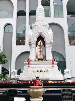 At Ratchaprasong Intersection, there is not only Ganesha and Tri, ladies. Opposite Big C, there is also Uma, at Gaysorn Plaza, there is also Lakshmi. On the other side, there is Brahma. Opposite Brahma on the Police Hospital side, look up a little bit and you will see Phraya Krut. If you want to worship, you have to worship in every direction, ladies.