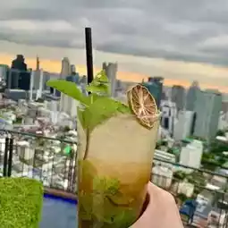 A rooftop restaurant and bar with a panoramic view of the city, Mahanakhon Building, and the Chao Phraya River. The breeze is cool and comfortable. The drinks and food are moderately priced. Sometimes there is a promotion of 1-for-1 drinks.