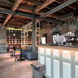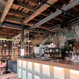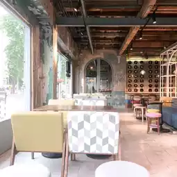 This is another shop that we really wanted to visit. We had walked past it before, but it wasn't finished yet. We like the classic style that still maintains the old look of the building. The interior is bare concrete walls, very vintage. Every corner is beautiful to take pictures, but the highlight is the corner where you can really see the temple view. It's like you're not in Bangkok at all.