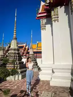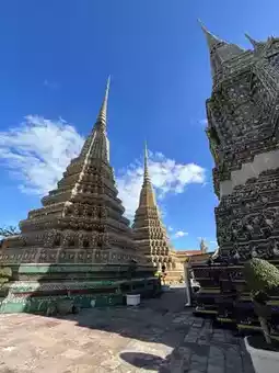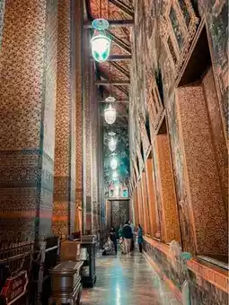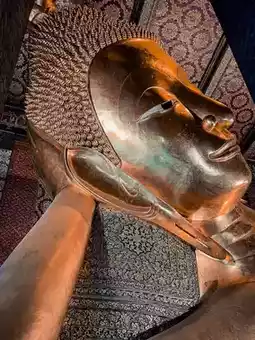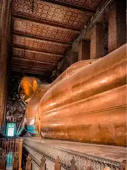 ✨ Inside the temple, there is a reclining Buddha statue, also known as the Wat Pho Reclining Buddha. This statue is the third-largest of its kind in Thailand, portraying the Buddha in the posture of blissful rest.