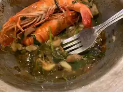 Because we went in the afternoon, no sun lambs (on the Internet is a lot of lambs), only large Size meat crab, see the door D crab is still moving, a order to immediately slaughter the crab, and add vermicelli to cook a pot on !Menu is indeed not many choices, ordered crab pot, shrimp pot each ~ meat crab vermicelli pot has a crab 🦀, large Size THB 750, shrimp vermicelli pot has 4 shrimp 🦐, only THB 290!