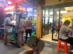 BTS Wongwian Yai Exit 3 Follow Google Map The age-like sliding gate, a bit like the feeling of the old grandfather rice shop, a road straight, will pass Somsak Claypot Crab another branch, but to sit on the street without air conditioning, so we go to Lat Ya branch.