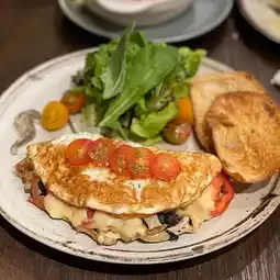Tiny Cup Cafe is an all-day cafe, open from 7 a.m. They're famous for their breakfast items, pastries, coffee, and tea. I really love the food here; it's healthy and delicious. The desserts are also delicious, and there's a wide variety to choose from. Today we ordered an egg white omelet, a mango cream cheese roll cake, a strawberry tart, and a hot Earl Grey tea. Everything was absolutely delicious!