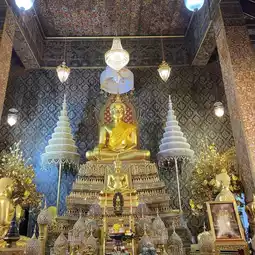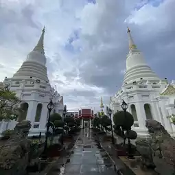 It was renovated around 2372 - 2375 B.E. in the reign of King Rama III. It is a white temple decorated with a little gold, making it look clean. Inside the temple, there are important religious objects and permanent structures, including a large white three-spire prang, the ordination hall built in Chinese art, enshrining Phra Siddhartha or Luang Pho Somprathan, which is the principal Buddha image in the chapel, with a very beautiful Buddha image. People often come to pay homage. The atmosphere here is considered good, quiet, and very suitable for meditation.