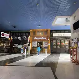 I've been to 2 restaurants: the fried chicken restaurant at the very front and Arirang. Both are good. There is also a Korean supermarket. They sell Korean snacks, food, and products.