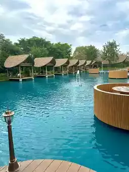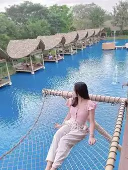 In addition to the "villas" on the water, the restaurant also has water hammocks, bubble houses and other photo-taking spots (bubble house photos cost 150 baht)