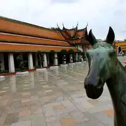 Wat Suthat Thepwararam or Wat Suthat is a royal temple that has been with Bangkok since the early Rattanakosin period. It is also a temple with a peaceful atmosphere, suitable for making merit, worshiping Buddha, and making the mind peaceful.