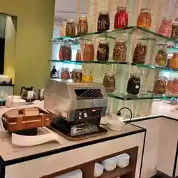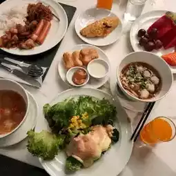 A variety of breakfast, including vegetarian food. For lunch, there is a Lunch Buffet for 450 baht, which is worth it.