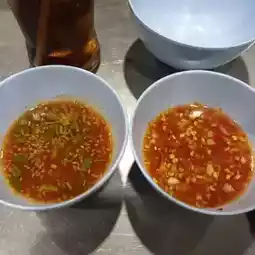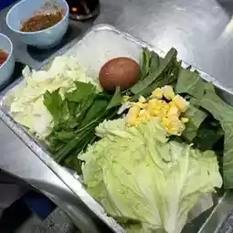 Let me tell you, it's spicy, the dipping sauce is so delicious, my tongue is numb. Their recipe is really young, you have to try it. The marinated pork is very delicious. The set is a little over 200 baht, enough for 2 people to eat. The service is excellent. If I have a chance, I will definitely go back to eat again.