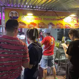 There are many popular stalls such as fried fried ghost a lot of people queuing in addition to tourists many locals queuing up to buy to eat 👍🏻