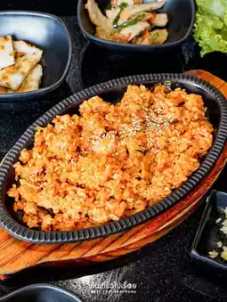 🥓🥩 The menu focuses mainly on pork, there are many types, well marinated, such as pork belly, pork neck, pork marinated in Kalbi sauce, marinated in Gochujang, Bulgogi, Doenjang, there is 1 marinated chicken item and 7-8 side dishes, including kimchi fried rice 🍚