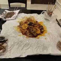 It is worth mentioning that we bought a pack of seafood 🦞 it has mussels  shrimp clams and other ingredients eat fresh shrimp are very large I like its sauce is tomato juice  sour and spicy we must add a spaghetti 🍝 mixed with this sauce is very tasty 🤤
