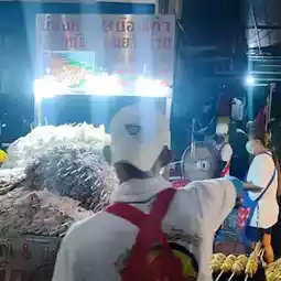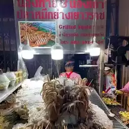 Guy Kao Grilled Squid, a popular place in Bangkok's Chinatown, grilled giant squid