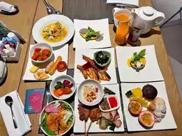 The breakfast is fantastic, with Japanese-style menus, such as salmon, golden crispy pork, soft-boiled egg, and seaweed salad.