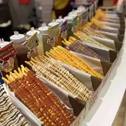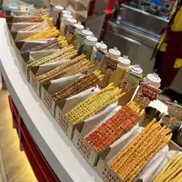 👉You can choose multiple flavors at a time. I picked mustard, cheese, and onion flavors. Very very evil, but very delicious. The giant fries (as long as my little arm 💪) were crispy on the outside and tender on the inside, full of sauce. I was just planning to try a few, but ended up finishing the whole box in one go.