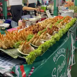 Close to St. Nearby, Bangkok's most famous Central World certainly has activities. Outside the mall, in addition to Line dolls to accompany you to take pictures to celebrate Christmas, there are also Street Food street snacks, although the price is slightly higher than the night market or market, but in the rich festive atmosphere, and do not have to go so far to eat Thai street snacks, quite attractive and convenient.