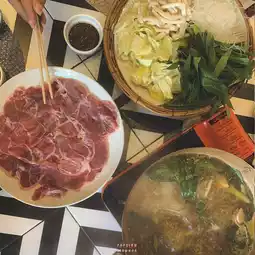 🍲 Charolette Beef Jaew Hon: The soup is fragrant with Jaew Hon ingredients. The meat is large, soft, and full of flavor. The tamarind dipping sauce is rich. Comes with a large vegetable set