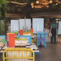 🏘 Cafe Chilli, a delicious Isan restaurant with a great atmosphere, located on the G floor of Iconsiam. The outside area offers a view of the Chao Phraya River. The interior of the restaurant is very eye-catching, both in terms of the colors of the chairs and the shop itself.