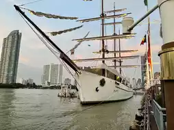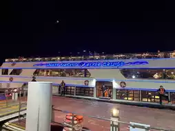 📍Here, they have a zone selling tickets for a buffet cruise along the Chao Phraya River at night. It’s a big boat. It’s parked right on the river.