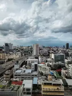 The view from the room goes to the city and a famous hotel from the movie Hangover, the lebua at State Tower