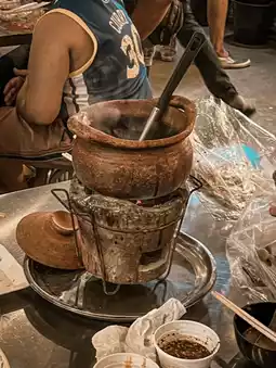 We ate raw pickled seafood 🦪 and Thai hot pot 🫕 very affordable 🎉 hot and spicy, we need to add a cup of coconut smoothie 🥥 and fried ice cream 🍦 to relieve the heat and cool the heart 💧