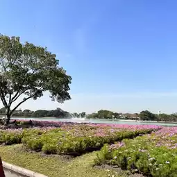 I had the opportunity to go to Bangkok and stopped by to relax at Suan Luang Rama 9 Public Park. It is a peaceful place where many people come to exercise. There is a convenient parking area. There are places to rest, drink water, rest, and take pictures. It is very spacious. The view is beautiful from every angle. Driving in costs 10 baht per person. Vehicle fee is 10 baht. The flowers and beauty are maintained all the time. It is a place for Bangkokians to relax. It is convenient to travel. If anyone comes, please stop by and visit.