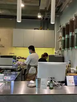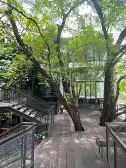 There are both indoor / outdoor areas and a mezzanine for chilling out, sipping coffee and soaking up the green atmosphere, super awesome