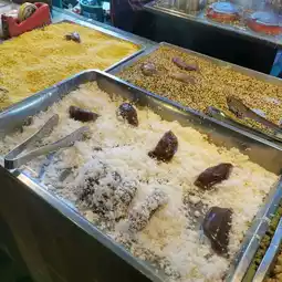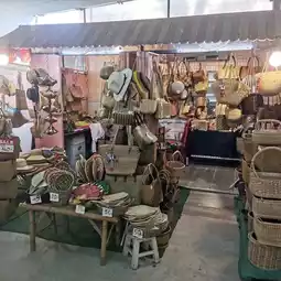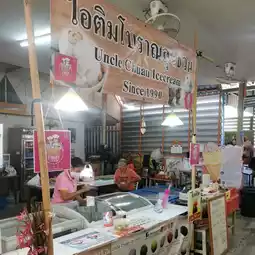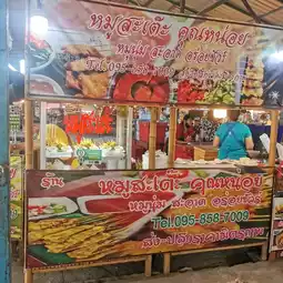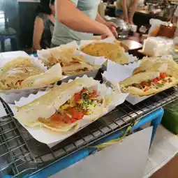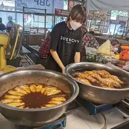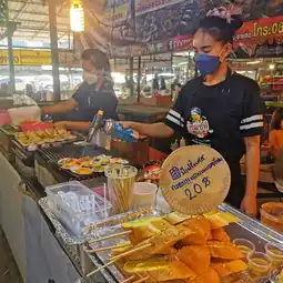 At Khlong Lat Mayom Floating Market, there are a lot of foods for sale. There are many types of food, both savory and sweet, fresh vegetables, and fruits. It's so much to see. After you're done shopping, you can sit down and eat here. There are comfortable and spacious seats.