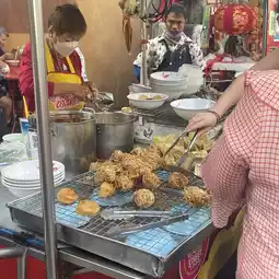 This dish costs 90฿. It’s a bit pricey, but the quality is great. Full of taro and big pieces of tofu. Most importantly, the dipping sauce is very delicious. It is sour and slightly sweet. It has a lot of peanuts. If you eat a lot, it is very spicy. If you can't eat spicy, be careful not to dip too much. #Yaowarat #YaowaratDeliciousFood #Review