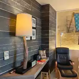 Mini bar with Nespresso coffee machine, and a sofa lounge with a television. Big bathroom, and enormous dressing room.