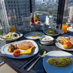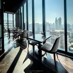 If anyone wants to sleep in a hotel for fun to change the atmosphere or take cool photos, I recommend it. There is a bar and a restaurant, Medinii, with a great atmosphere. Or take the elevator to the 37th floor and you will find a swimming pool with a great view. You can see a 180-degree view. 💕