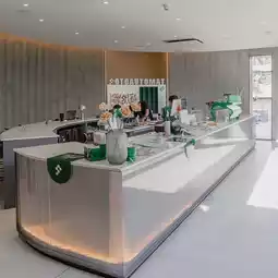 A stylish cafe that transforms the interior of the shop into a very inviting place to sit. The decoration emphasizes green tones, alternating with black and gray, and combining minimalist furniture and props. It emphasizes simplicity, creating an open and comfortable atmosphere with clear glass partitions almost throughout the shop. You can sit and relax while looking at the trees outside comfortably. For those who want to take pictures📸, prepare your outfit because the photo corners are incredibly stunning. You can take pictures from almost every corner. Most importantly, there is a “Photobooth” for girls to pose for photos continuously.