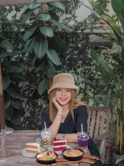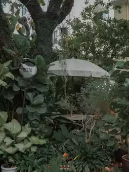☘ When you walk through the white archway, you will find a green area outside the shop, providing a shady atmosphere, suitable for those who like to relax, look at trees, sip coffee, and immerse yourself in nature and feel like you are sitting in a backyard.