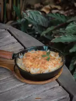 👉🏻 Sopha Mozzarella (220.-) Stir-fried rice with basil and baked chicken with cheese, has the flavor of stir-fried basil served on a hot pan, giving it a satisfying aroma, sprinkled with melted mozzarella cheese. Cheese lovers must not miss it.