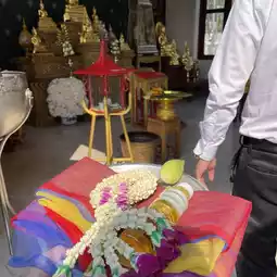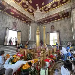 We went during the weekdays. There weren't many people. There were flowers, tri-colored cloth, incense, and candles. Each place had signs telling us where to pay homage first. There were 5 spots in total.