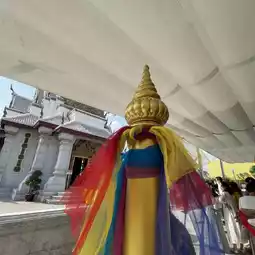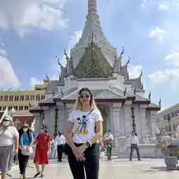 The trip was very convenient. MRT Sanam Chai, Exit 1. Walk along and enjoy the old city. If you walk a little closer, you will see Wat Pho. You can walk around, but it might be a bit hot. You should bring an umbrella or a hat.