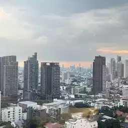 The room has a kitchen corner, sofa, high floor view, separate wet and dry bathroom. If you have a plan to travel around Thonglor, Sukhumvit, I recommend staying here. You can walk to find food conveniently. There are many coffee shops and restaurants nearby to choose from.