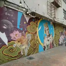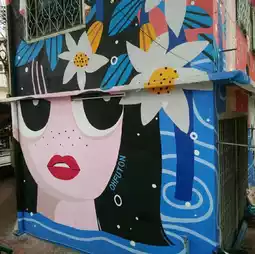 ... There are many street art images on both sides for you to enjoy walking around and admiring. It is a unique and beautiful color.