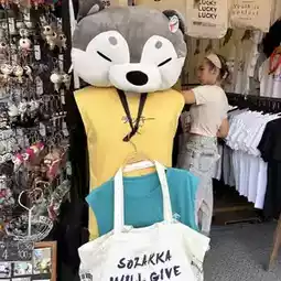 I bought a lot of Shiba Inu shirts and souvenirs, and also ate coconut ice cream glutinous rice, strawberry shaved ice, and pandan cake!