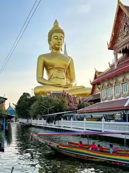 One of my most impressive discoveries in Bangkok is the giant Buddha statue in Wat Pak Nam Temple. This is the largest Buddha statue in the capital of Thailand, whose height is 64 meters. The most unusual angles on this statue should be looked for near the channels that flow next to the temple. An absolutely incredible sight!