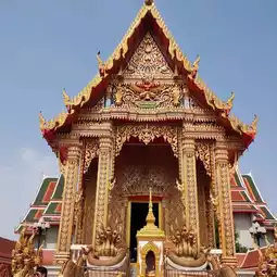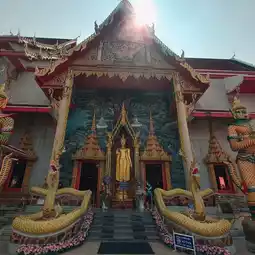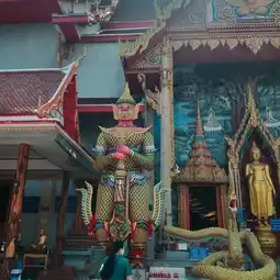 The temple is very well-managed. Convenient parking, clean restrooms, currency exchange, complete with flowers, incense, candles, and a place to make merit by feeding fish, a stove, and very big fish. There is also a check-in point for taking pictures.